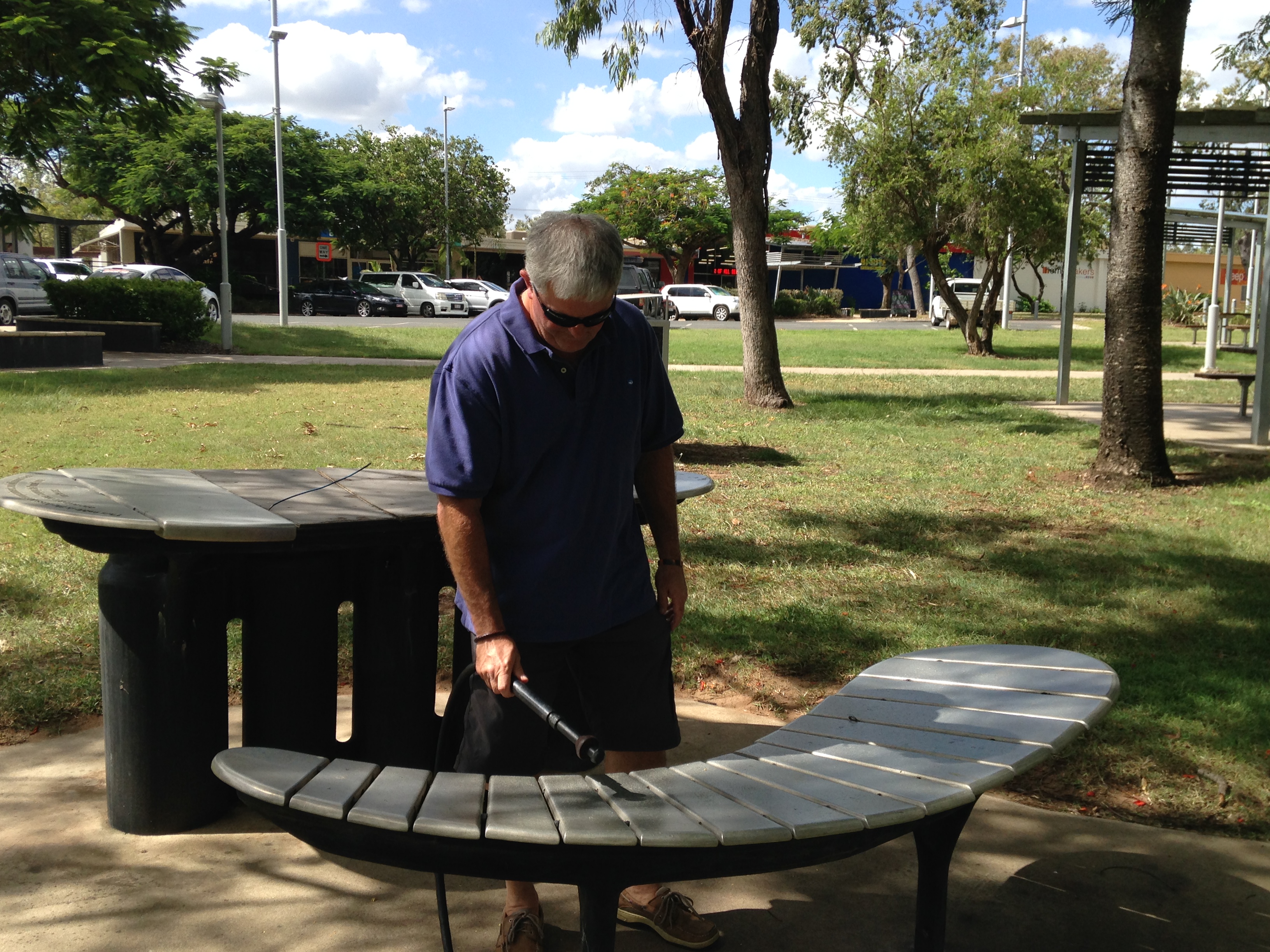 When we get to a town. We delight in whatever it has to offer, in this case a xylophone.