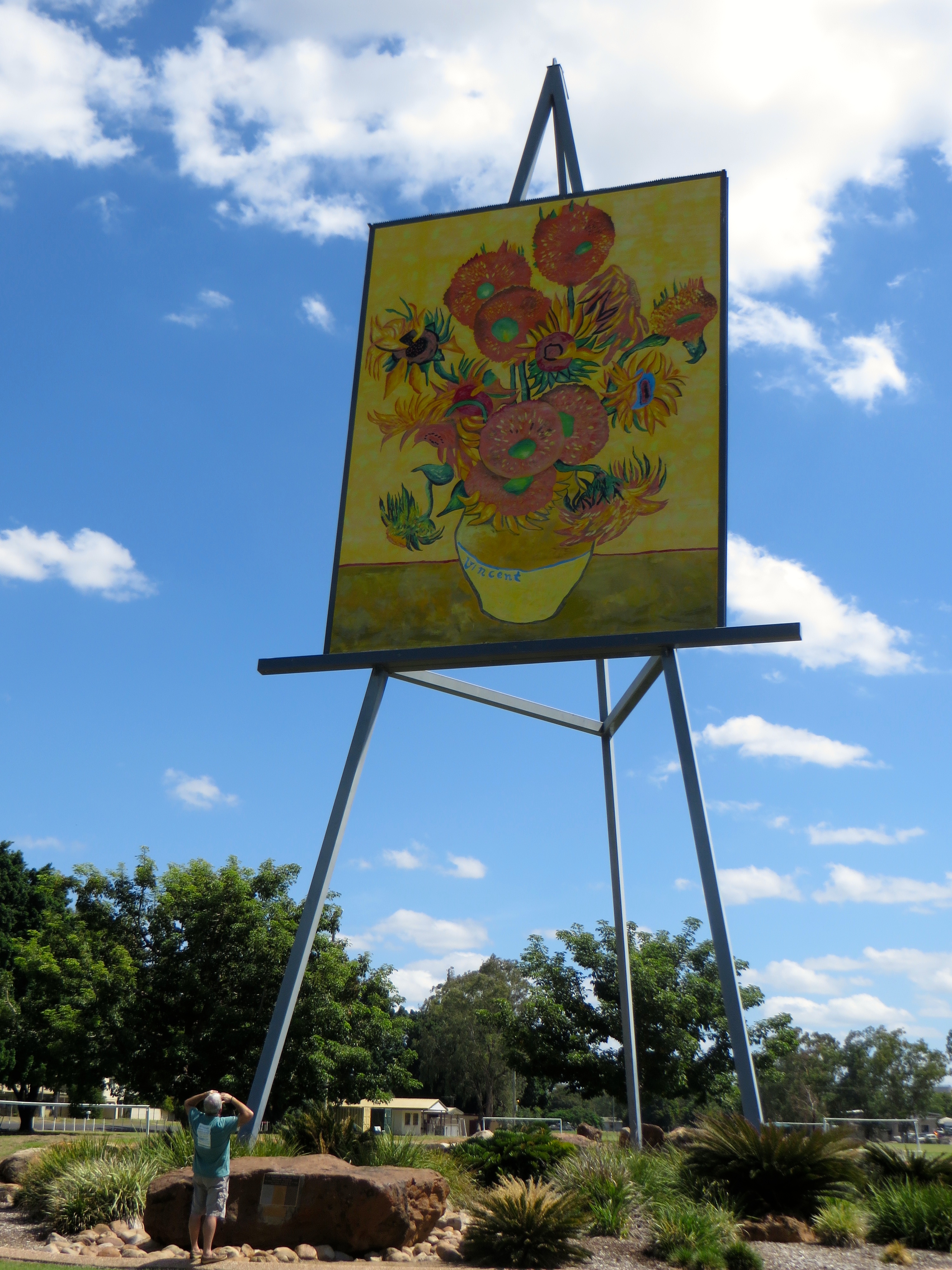 First stop, Emerald (population 12,895), home of the largest painting on an easel in the world!