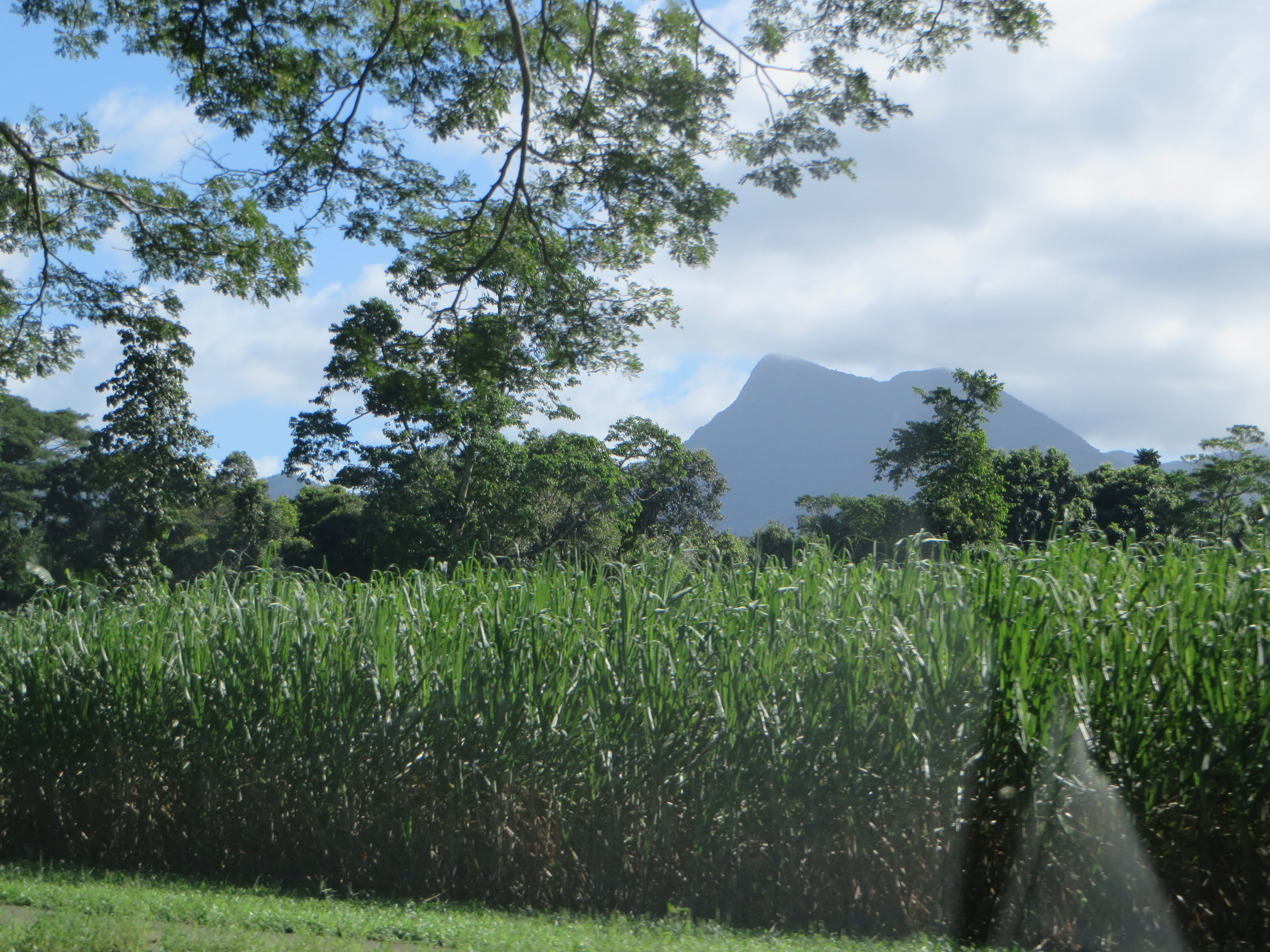 As we turn toward the coast, the landscape changes drastically. Eventually the dusty plains give way to sugar cane and the endless flat… ends….and becomes green mountains….