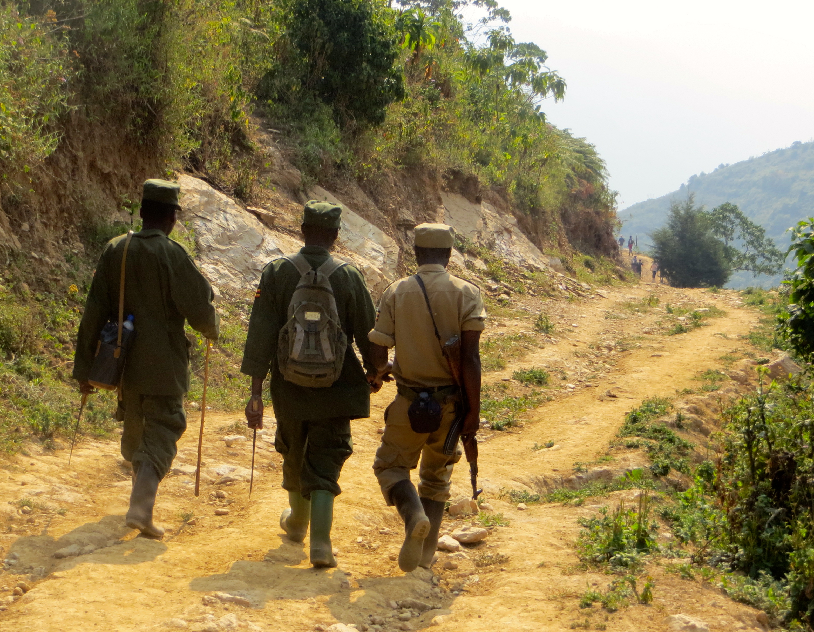 First thing in the morning, we are treated to another African massage on our way to the briefing area where we met our guide Benjamin and our assigned police and military guards along with the other six trackers. Tony and I also hired porters to carry our stuff as well as push and pull us as needed. This of course lightens our burdens and provides much needed jobs for the locals, many of whom benefit only tangentially from the Gorilla Tracking $500 permits if at all.
